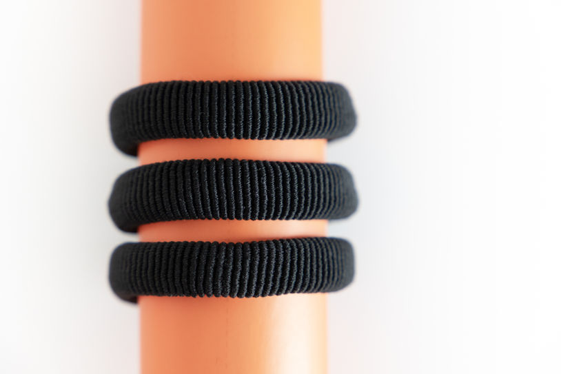 The combination of soft materials mixed with an elastic that's woven throughout allows them to provide the most comfortable, enduring hold without hurting your head. It'll feel so good, you'll forget you're wearing a hair tie.